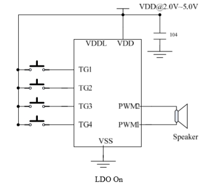 語音引擎:9bits PWM. / 9bits DAO.可編輯群組數:63 組(最大) .可放聲音⾧度:5-80S內置單片機觸發模式SPI接口 內置RC震盪起振迴路,無須外部電路 寬工作電壓:2.0~5.0V 工作溫度:-20℃ ~ 60℃ (不計工作頻率飄移)
